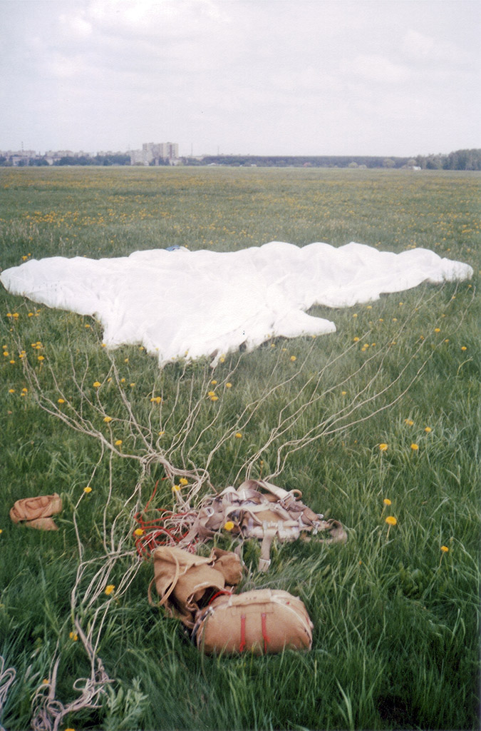 Теперь можно снять с себя лямки парашюта и сложить, как придется, купол в сумку.